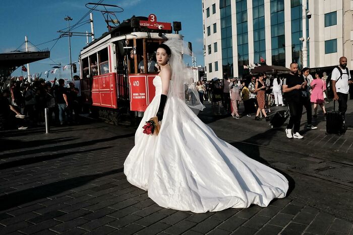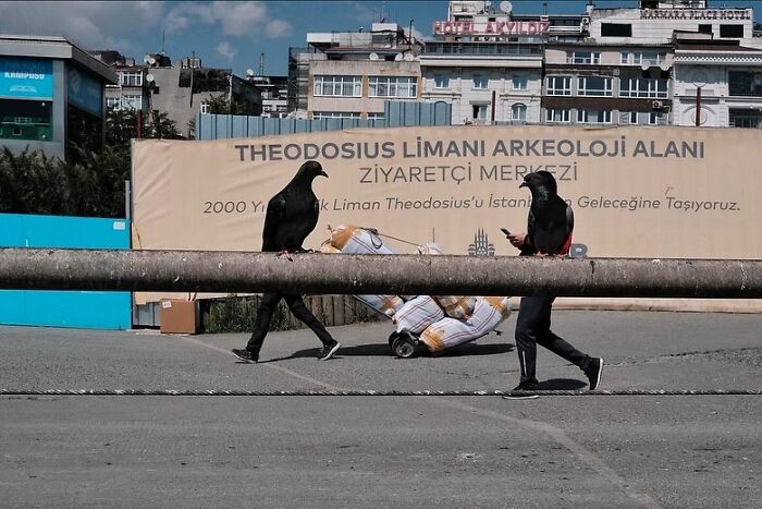 Alper Eryiğit, a street photographer from Turkey, has a gift for spotting moments that make you stop and look twice. His photos capture everyday life with a twist—like a crow that looks like it’s walking beside a person or a bride standing out in the middle of a busy street.