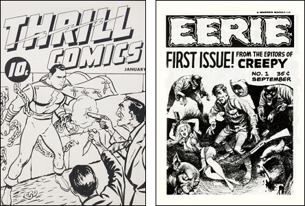 This playing-around with numbers was made possible by what they called “ashcan issues.” An ashcan issue was a thin, cheaply-made comic book –actually more like a pamphlet — that was whipped up to secure a copyright, a trademark or even just a “nyah nyah, we got there first.” I can explain this more easily be referring to Eerie — a companion magazine to Creepy –both published by Warren Magazines.