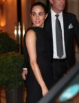 Paris, FRANCE Meghan Markle, the Duchess of Sussex, was spotted leaving the Hôtel Plaza Athénée in Paris, looking stunning in an elegant black dress as she made her way to the Balenciaga after-party during Paris Fashion Week.